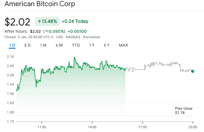 เมื่อวันจันทร์ที่ผ่านมา American Bitcoin ทำผลงานได้ดีที่สุดในสหรัฐฯ ที่มา: Google Finance