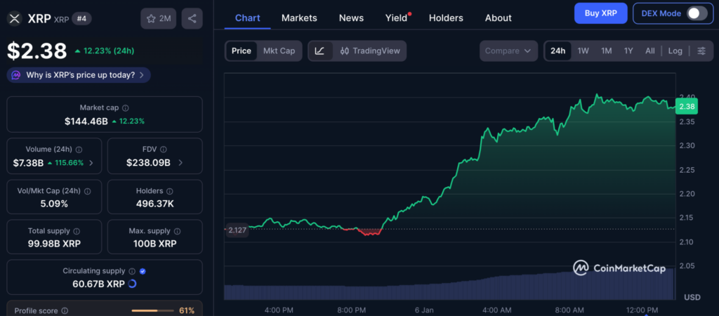 ทางด้าน Ether (ETH) ก็โชว์ฟอร์มเยี่ยม ราคาทะลุ 3,200 ดอลลาร์ ทำจุดสูงสุดในรอบ 3 สัปดาห์ แต่ที่โดดเด่นที่สุดต้องยกให้ XRP ที่ราคาพุ่งแรงเกือบ 12% ขึ้นไปแตะ 2.39 ดอลลาร์ ซึ่งเป็นราคาสูงสุดในรอบเกือบ 2 เดือน