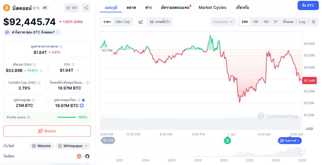 ในขณะที่รายงาน ราคา Bitcoin มีการซื้อขายอยู่ที่ $92,445 ลดลง 1.62% ตลอดช่วง 24 ชั่วโมงที่ผ่านมา ตามข้อมูลจาก CoinMarketCap