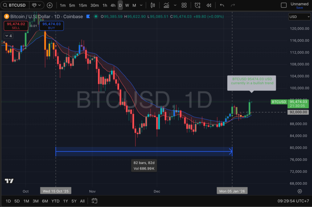 ล่าสุดราคามีการย่อตัวลงมาพักฐานเล็กน้อยอยู่ที่บริเวณ $95,474 ใครที่ตามลุงโฉลกไว้เมื่อวานซืน รอบนี้คงได้ยิ้มแก้มปริกันถ้วนหน้า ส่วนใครที่ยังลังเลอยู่งานนี้ต้องดูว่าสัญญาณเขียวนี้จะพาเราไปแตะ High เดิมได้หรือไม่