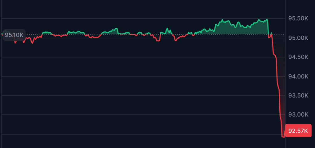 ราคา Bitcoin ได้เกิดความผันผวนอย่างรุนแรงในช่วงเช้ามืดจากการเทขายอย่างหนักและการล้างโพสิชันในตลาดฟิวเจอร์สจนส่งผลทำให้ราคาร่วงอย่างรุนแรงกว่า 2.89% ทะลุ $92,000 ในชั่วขณะหนึ่ง