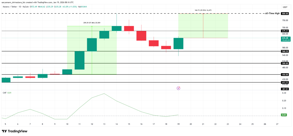 ในช่วง 24 ชั่วโมงที่ผ่านมา XMR สามารถรักษาแนวรับสำคัญไว้ได้อย่างเหนียวแน่น ขณะที่ข้อมูล On-chain บ่งชี้ว่าแม้แรงซื้อจะเริ่มชะลอตัวลง แต่ปริมาณการไหลออกของเงิน (Outflow) ยังอยู่ในระดับต่ำ สะท้อนถึงสภาวะการสะสมกำลังของนักลงทุน เพื่อรอจังหวะผลักดันราคาให้ทะลุแนวต้านสำคัญสู่เป้าหมาย $800 ต่อไป