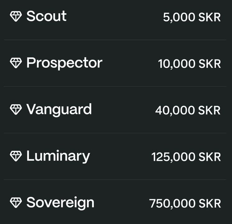ตัดภาพกลับมาที่ปัจจุบัน Seeker Airdrop ได้แจกจ่ายโทเค็นให้กับผู้ใช้จำนวน 100,908 ราย โดยจะทำการแจกจ่ายโทเคนเป็นปริมาณมากถึง 20% ของอุปทานสูงสุดหรือ 1,819,755,000 $SKR ซึ่งจำนวนที่ได้จะแตกต่างกันออกไปในแต่ละบัญชีแบ่งแยกย่อยได้ 5 ลำดับชั้นตามภาพ