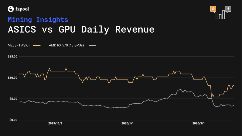 การเปรียบเทียบรายได้ระหว่าง ASIC กับการ์ด GPU โดย F2Pool