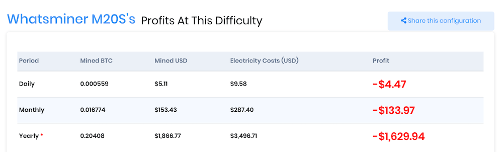 อย่างไรก็ตาม ตัวเลขนี้คือ “รายได้ก่อนหักค่าใช้จ่าย” เท่านั้น นักขุดยังต้องนำยอดนี้ไปหักลบกับค่าไฟฟ้าที่เครื่องกินไปตลอด 24 ชั่วโมง ซึ่งหากหักลบแล้วเหลือส่วนต่างมากพอ ก็จะกลายเป็นกำไรสุทธิที่จะนำไปชดเชยค่าตัวเครื่องขุดในลำดับถัดไป