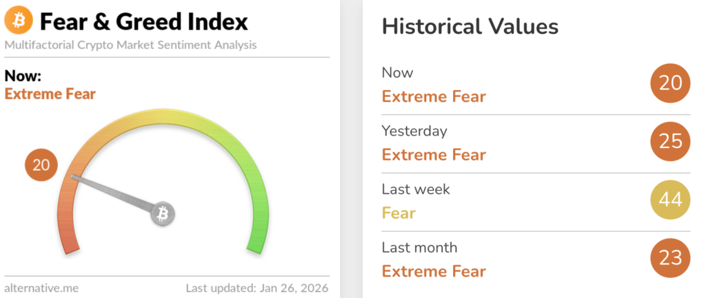 นอกจากปัจจัยภายนอกแล้ว ตลาดคริปโตกำลังเผชิญกับ “วิกฤตศรัทธา” ครั้งสำคัญ หลังความผันผวนอย่างรุนแรงทำให้นักลงทุนเริ่มไม่มั่นใจในสถานะ Safe Haven ของ Bitcoin เมื่อเทียบกับทองคำ ส่งผลให้ดัชนี Crypto Fear & Greed Index ทรุดตัวลงอย่างรวดเร็วเข้าสู่โซน “Extreme Fear” (กลัวสุดขีด) สะท้อนให้เห็นถึงแรงเทขายที่มาจากความตื่นตระหนกทั่วตลาด