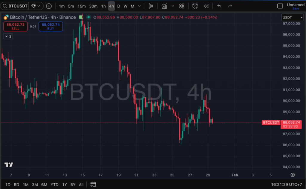 ตลอดสัปดาห์ที่ผ่านมา Bitcoin เคลื่อนไหวอยู่ในกรอบแคบ $86,000–$89,000 และทำผลงานในเดือนมกราคมได้อย่างน่าผิดหวัง โดยปรับตัวขึ้นมาเพียง 1%