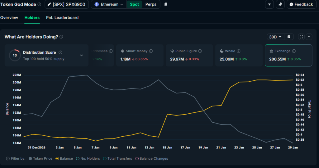 ซ้ำร้าย ตัวการสำคัญที่พาพอร์ต Murad ดิ่งเหวหนักที่สุดคือ SPX6900 (SPX) ซึ่งเป็นเหรียญมีมที่เขามั่นใจและถือครองมากที่สุดถึง 30 ล้านโทเคน หรือประมาณ 3.2% ของอุปทานหมุนเวียนทั้งหมด