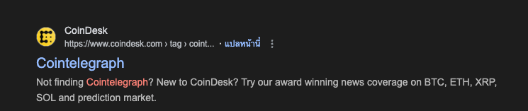 และที่เจ็บแสบที่สุดคือคู่แข่งอย่าง CoinDesk ที่ฉวยจังหวะนี้ยิงโฆษณาดักหน้าคนค้นหาว่า “หา Cointelegraph ไม่เจอเหรอ? มาอ่านข่าวรางวัลคุณภาพที่นี่สิ” เรียกว่าขยี้ซ้ำแผลให้เลือดซิบกันเลยทีเดียว