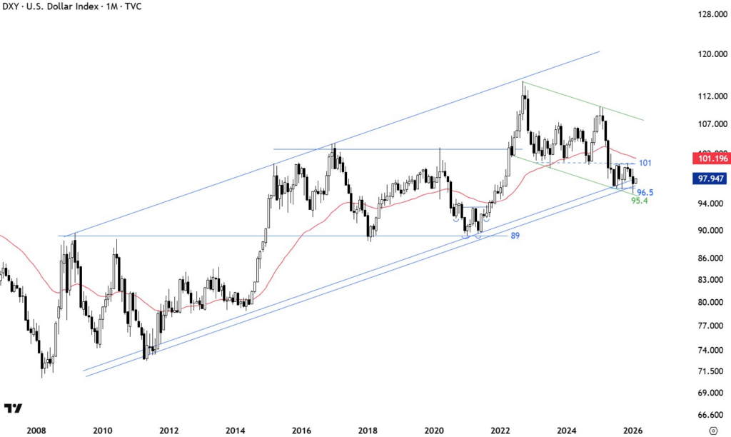 กราฟดัชนีค่าเงินดอลลาร์สหรัฐ (DXY) ระยะ 1 เดือน แหล่งที่มา: Aksel Kibar/X