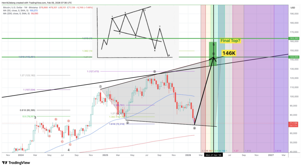 กราฟราคา BTC/USD ในรอบหนึ่งสัปดาห์ ที่มา: Henrik Zeberg/X
