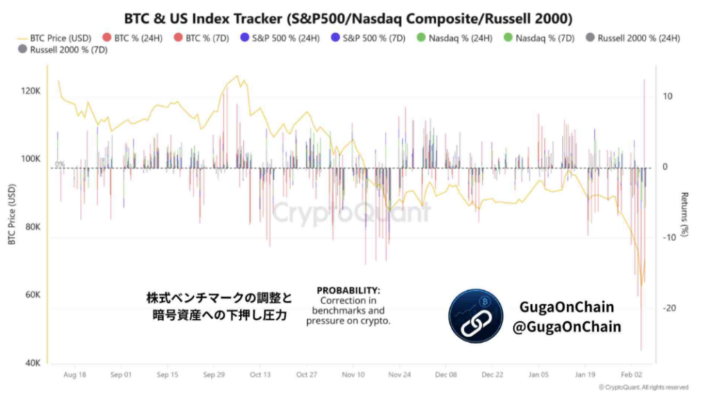 โดยในช่วงที่ตลาดอยู่ในโหมดระมัดระวังตัว ราคา Bitcoin มักจะวิ่งตามตลาดหุ้นสหรัฐฯ อย่างใกล้ชิด ดังนั้นเมื่อหุ้นสหรัฐฯ เริ่มเสียทรงจากความไม่แน่นอนของเศรษฐกิจโลก แรงเทขายจึงลามมาถึงคริปโตได้ง่าย แม้ว่าปัจจัยพื้นฐานในเครือข่ายของ Bitcoin จะยังดูแข็งแกร่งอยู่ก็ตาม
