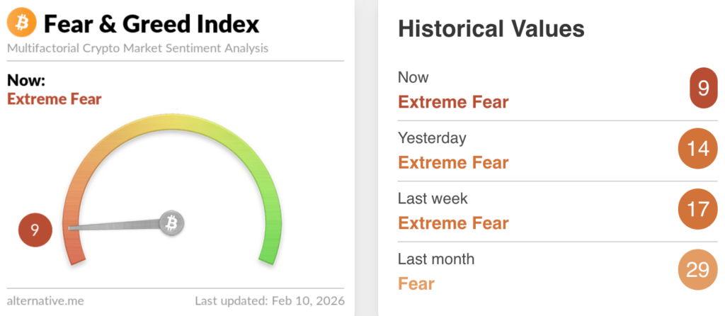 ด้าน Fear & Greed Index ปัจจุบันยังคงอยู่ในโซน “กลัวสุดขีด” คะแนนถ่อยร่นลงมาเหลือเลขหลักเดียว แม้จะไม่มีข่าวด้านลบรุนแรง แสดงให้เห็นว่าในขณะนี้ตลาดเลือกที่จะสังเกตการณ์อยู่ภายนอกมากกว่ากล้าเข้ามาเสี่ยง (Risk-off)