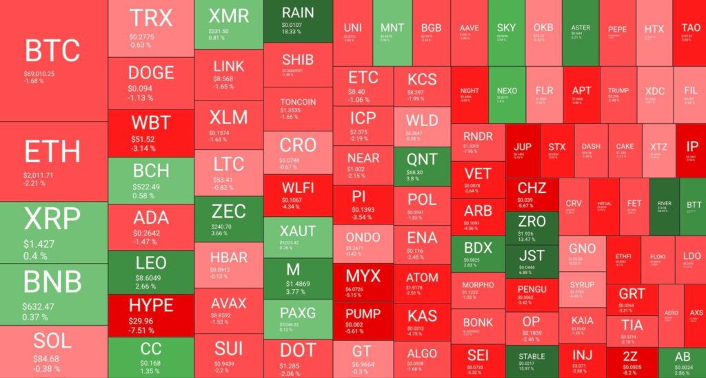 - Bitcoin ร่วงแตะ $69,000 ทำ Altcoins ส่วนใหญ่ปรับตัวลงตาม