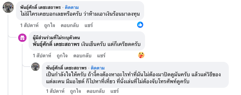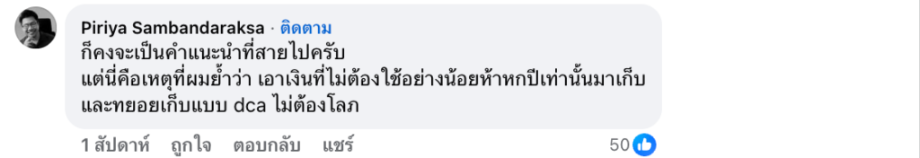 แม้เจ้าของโพสต์จะชี้แจงว่า เงินก้อนนี้เป็นเงินเย็นที่ยังไม่ต้องรีบใช้ในทันที แต่ความเครียดที่เกิดขึ้นสะท้อนให้เห็นว่า ระดับความเสี่ยงที่ยอมรับได้จริงนั้นต่ำกว่าสิ่งที่คาดไว้