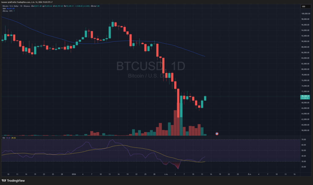 - Bitcoin ดีดตัวกลับแรงจากระดับต่ำสุดที่ $60,000 พุ่งทะลุ $70,000 ในช่วงต้นกุมภาพันธ์ 2026 หลังเจอแรงขายหนักที่สุดนับตั้งแต่เหตุการณ์ FTX ล่มสลาย