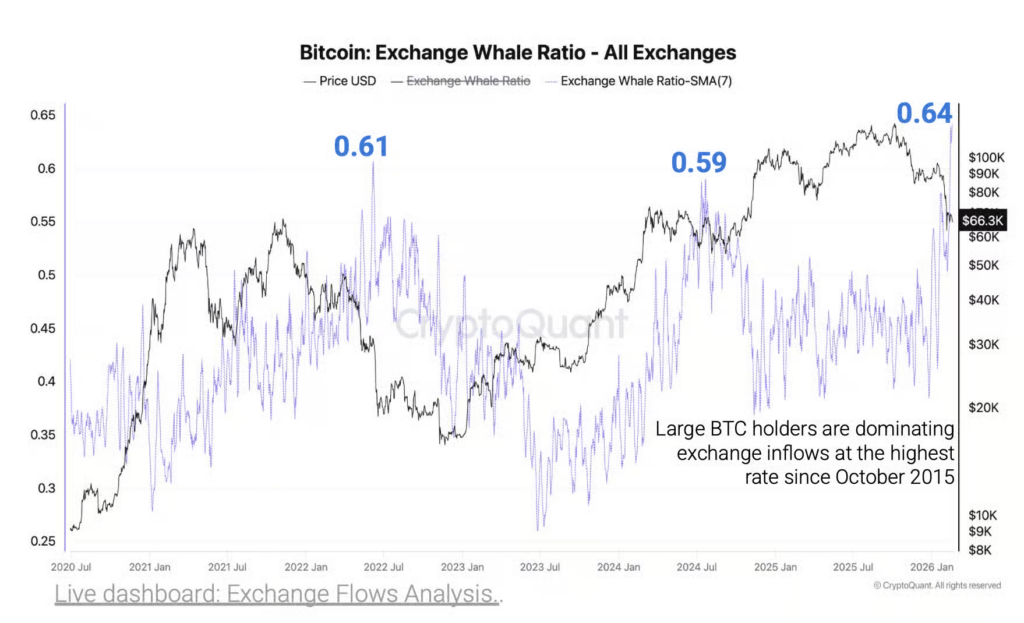 รายงานจาก CryptoQuant ระบุว่า พายุสีเลือดในตลาดคริปโตขณะนี้มีต้นเหตุหลักมาจากแรงเทขายของเจ้ามือ โดยสัดส่วนการฝาก Bitcoin เข้ากระดานเทรดจากเจ้ามือรายใหญ่พุ่งแตะ 64% สูงสุดนับตั้งแต่เดือนตุลาคม 2015 และสถานการณ์โดยรวมยังคงเปราะบางขั้นสุด เนื่องจากฝั่ง Altcoin ก็เผชิญแรงเทขายที่พุ่งสูงขึ้นอย่างต่อเนื่อง และสภาพคล่องจากเหรียญ Stablecoin ที่ไหลเข้ากระดานเทรดนั้น ยังหดหายไปจากตลาดจนแทบจะเกลี้ยง