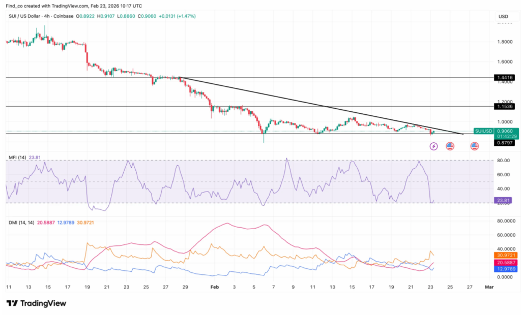 • SUI ร่วงลงมาอยู่ที่ $0.85 ต่ำกว่าจุดสูงสุดตลอดกาลที่ $5.35 ถึง 83% โดยมีวันปิดบวกเพียง 8 วันจาก 30 วันที่ผ่านมา เฉพาะเดือนกุมภาพันธ์ร่วง 47%