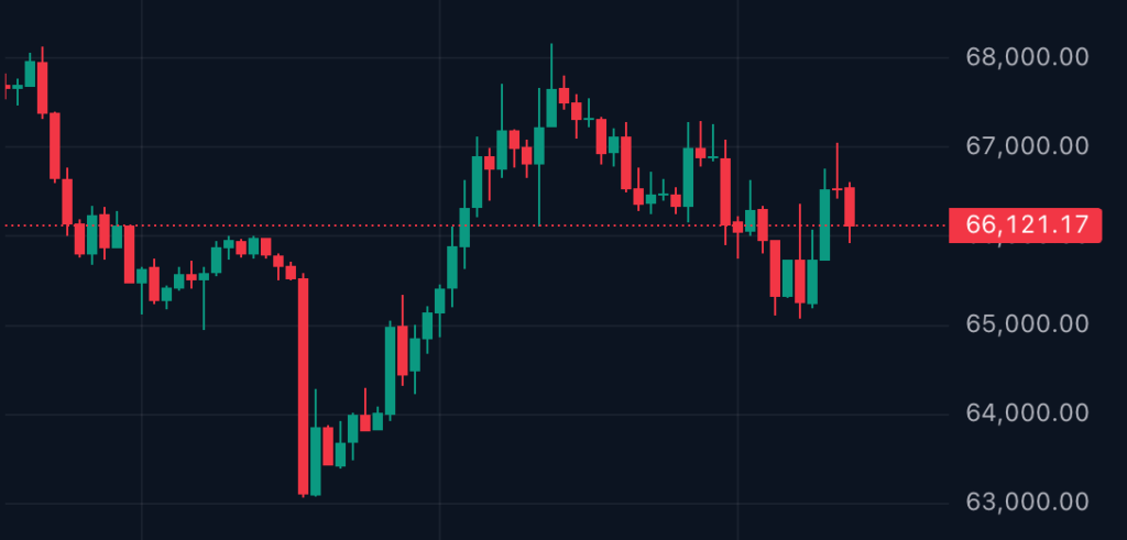 - Bitcoin ลงไปทดสอบแนวรับที่ $63,000 ก่อนทะยานกลับขึ้นมาเหนือ $66,000 แต่ความผันผวนยังไม่สงบ