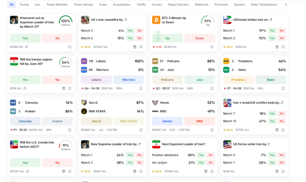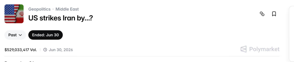 ดูเหมือนว่า Polymarket แพลตฟอร์มตลาดเดิมพันชื่อดัง จะใช้เวลาไม่ถึงหนึ่งวันเปลี่ยนสมรภูมิความเครียดในตะวันออกกลางให้กลายเป็นกระดานเทรดขนาดมหึมา