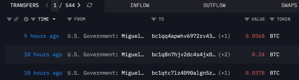 - หน่วยงานรัฐบาลสหรัฐฯ ทำการโอนย้าย Bitcoin จำนวน 0.3346 BTC มูลค่าประมาณ 23,000 ดอลลาร์ ออกจากวอลเล็ตที่ยึดมาได้จากคดีอาญาชื่อ Miguel Villanueva จนยอดคงเหลือเป็นศูนย์