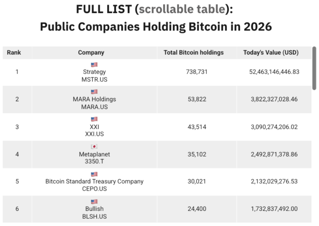 148 บริษัทระดับโลกถือ Bitcoin แล้ว! Strategy ขึ้นแท่นเบอร์ 1 ครองสัดส่วน 63% ของทั้งหมด