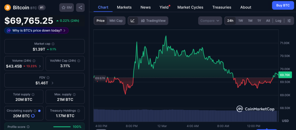 โดยปัจจุบัน ราคา Bitcoin ซื้อขายอยู่ที่ราว $69,765 ดอลลาร์ หลังจากทำ All-Time High ไว้ที่ $126,000 เมื่อเดือนตุลาคม 2025