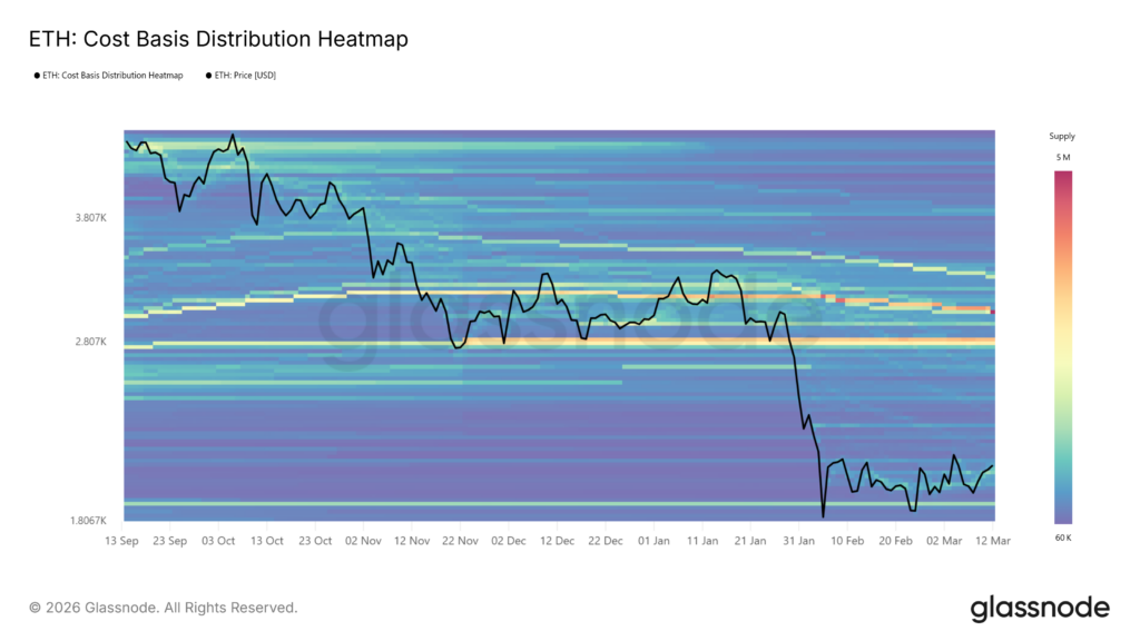 ข้อมูลจากแพลตฟอร์ม Glassnode เผยให้เห็นกลุ่มก้อนการสะสมเหรียญขนาดใหญ่ใกล้กับระดับราคา 2,800 ดอลลาร์สหรัฐ ซึ่งเป็นจุดที่มีการเข้าซื้อเหรียญไปแล้วกว่าสามล้านเหรียญก่อนหน้านี้ โดยปกติแล้วโซนต้นทุนเหล่านี้มักจะทำหน้าที่เหมือนแม่เหล็กดึงดูดราคาเมื่อเกิดแนวโน้มขาขึ้น เนื่องจากเป็นจุดที่นักลงทุนกลุ่มใหญ่มักจะเข้ามาปกป้องสถานะหรือซื้อเพิ่ม นอกจากนี้ข้อมูลยังชี้ให้เห็นว่ามีอุปทานกระจุกตัวอยู่น้อยมากในช่วงราคาตั้งแต่ 2,200 ถึง 2,800 ดอลลาร์สหรัฐ ซึ่งหมายความว่าหากราคาสามารถทะลุกรอบปัจจุบันไปได้ มันอาจจะพุ่งตรงไปยังโซน 2,800 ดอลลาร์สหรัฐได้อย่างราบรื่น และในมุมมองทางเทคนิค เส้นค่าเฉลี่ย SMA สองร้อยวันก็ตัดผ่านใกล้กับระดับ 2,800 ดอลลาร์สหรัฐบนกราฟรายวันเช่นเดียวกัน