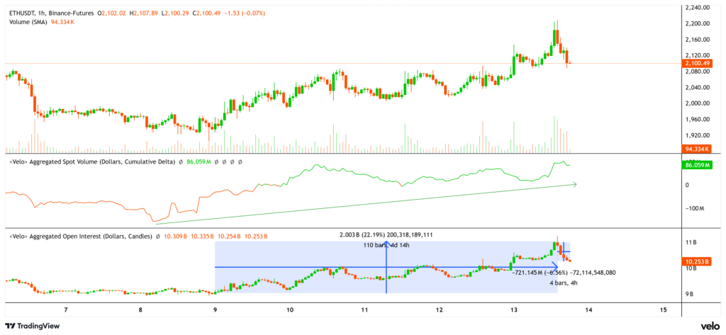 อย่างไรก็ตามข้อมูลจากตลาดอนุพันธ์กลับส่งสัญญาณเตือนว่านักเทรดยังคงระมัดระวังตัวในช่วงราคาปัจจุบัน กิจกรรมในตลาดฟิวเจอร์สของ Ether ขยายตัวขึ้นในช่วงที่ราคาปรับตัวสูงขึ้นเมื่อต้นสัปดาห์ โดยมูลค่าสถานะคงค้างพุ่งขึ้น 21 เปอร์เซ็นต์ไปแตะระดับ 10.9 พันล้านดอลลาร์สหรัฐในขณะที่ราคาพยายามดันขึ้นไปที่ 2,200 ดอลลาร์สหรัฐ แต่หลังจากที่ราคาพุ่งไปทดสอบกรอบด้านบน มูลค่าสถานะคงค้างกลับลดลงประมาณ 6 เปอร์เซ็นต์ ซึ่งเป็นสัญญาณว่านักเทรดบางส่วนเริ่มปิดสถานะเพื่อทำกำไรหรือลดความเสี่ยงแทนที่จะเปิดสถานะเพิ่ม ทำให้โมเมนตัมของการพุ่งขึ้นต้องสะดุดลง