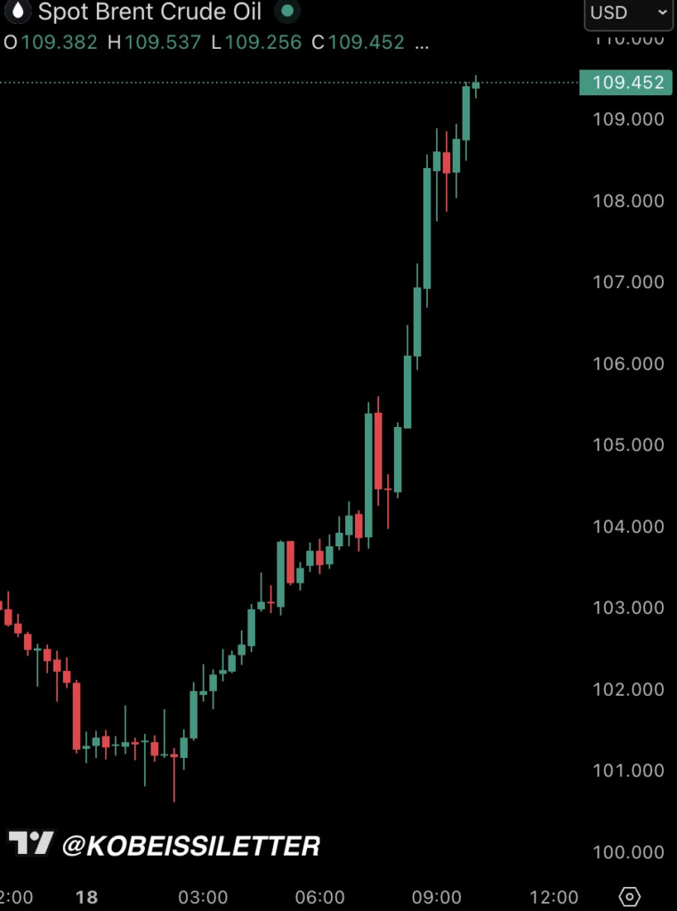 กราฟราคาน้ำมันดิบ Brent จาก @KobeissiLetter