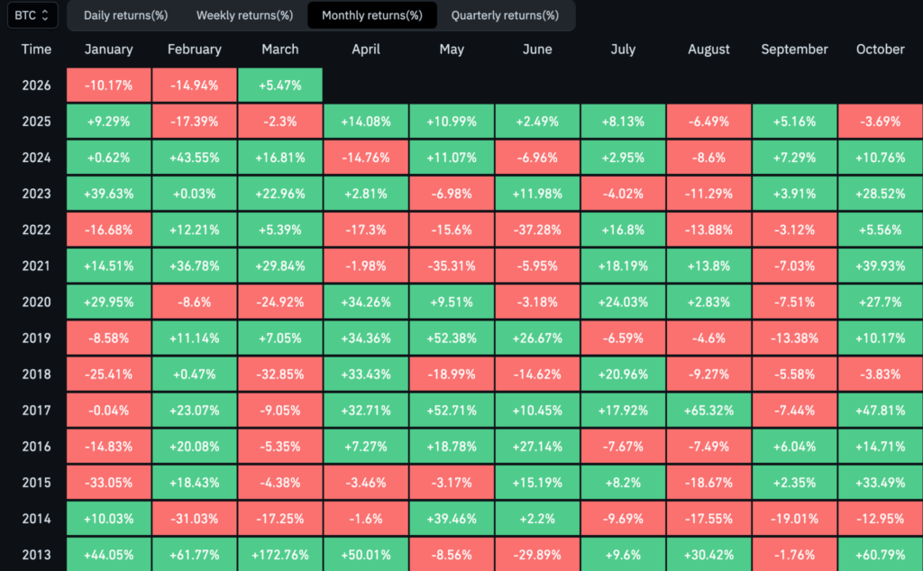 แม้ราคา Bitcoin จะเคยพุ่งขึ้นมายืนเหนือระดับราคา $70,000 ได้ในเดือนนี้ แต่นักวิเคราะห์ต่างออกมาเตือนให้นักลงทุนระมัดระวัง เดือนเมษายน โดยอ้างอิงจากสถิติแพทเทิร์นในอดีตและวัฏจักรฤดูกาลที่บ่งชี้ว่า การพุ่งขึ้นในเดือนมีนาคมอาจเป็นเพียงขาขึ้นหลอก และตลาดยังขาดการทิ้งดิ่งเพื่อกวาดล้างสภาพคล่อง ที่เป้าหมายการร่วงลงอาจดิ่งลงถึง $55,000