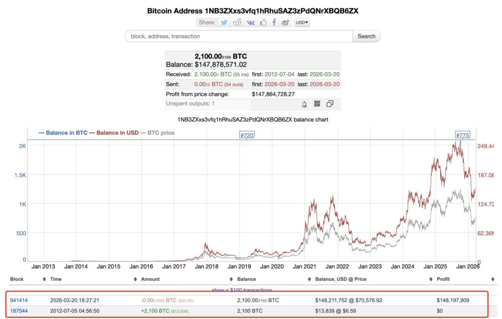 แหล่งอ้างอิง: Lookonchain (X), BitInfoCharts (Wallet: 1NB3ZX…)