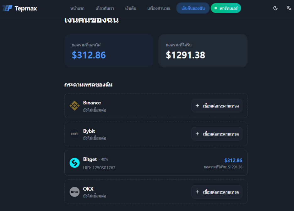 Tepmax ช่วยให้ขั้นตอนการขอคืนเงินที่เคยยุ่งยาก และต้องดำเนินการด้วยตัวเองของแต่ละกระดานเทรดกลายเป็นเรื่องง่าย โดยผู้ใช้สามารถรับเงินคืนได้อัตโนมัติตลอด 24 ชั่วโมง จากการลงทะเบียนเพียงครั้งเดียว ซึ่ง Tepmax ได้รับเสียงตอบรับเป็นอย่างดีจากผู้ใช้งานทั่วโลก