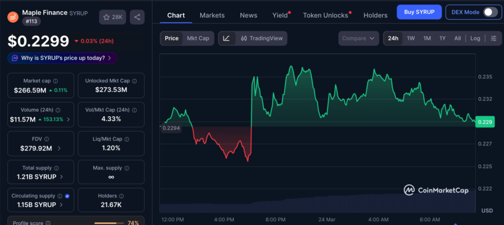 แพลตฟอร์มสินเชื่อสถาบันที่กำลังมาแรง โดยกลุ่มเจ้ามือเพิ่มการถือครอง SYRUP มากถึง 767% โดยกวาดซื้อเพิ่มไปราว 5.6 ล้านโทเคนในช่วง 30 วันที่ผ่านมา แม้ราคาจะย่อตัวลงสั้นๆ แต่ยอดถือครองรวมของเจ้ามือ แตะ 461.13 ล้านโทเคนไปแล้ว