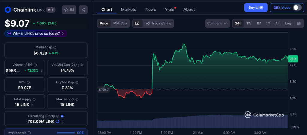 ตัวกลางสำคัญที่เชื่อมข้อมูลโลกจริงสู่บล็อกเชน ข้อมูลระบุว่ากลุ่ม Smart Money เพิ่มการถือครองขึ้น 3.82% ในช่วงที่ตลาดอ่อนแอ โดยเจ้ามือรายใหญ่ช้อนซื้อไปกว่า 370,000 LINK ตั้งแต่ปลายเดือนกุมภาพันธ์ ยิ่งไปกว่านั้นกองทุน Spot ETF ของ LINK ยังมีเงินไหลเข้าสุทธิทุกสัปดาห์ทะลุ 73 ล้านดอลลาร์