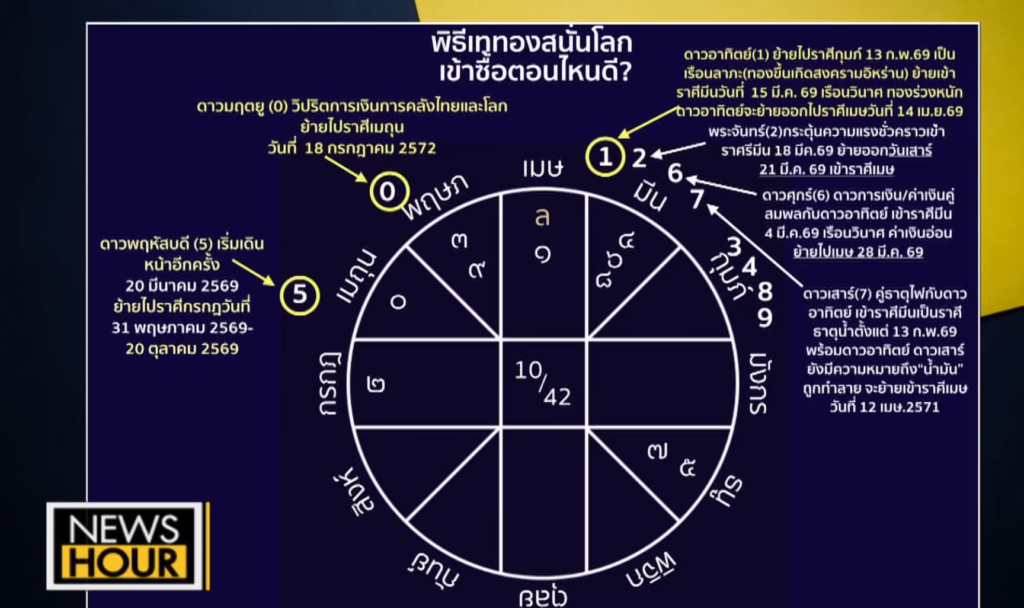 โอกาสสุดท้ายในการเก็บ “ของถูก” ใครที่กำลังเล็งทองคำอยู่ อ.ปานเทพ ระบุว่าช่วงที่ดาวอาทิตย์ย้ายเข้าสู่ราศีมีนวันที่ 15 มีนาคม – 14 เมษายน 69 เป็นเสมือนช่องว่างสั้นๆ ที่ราคาจะปรับฐานลงมาให้เราได้ทยอยเก็บของ