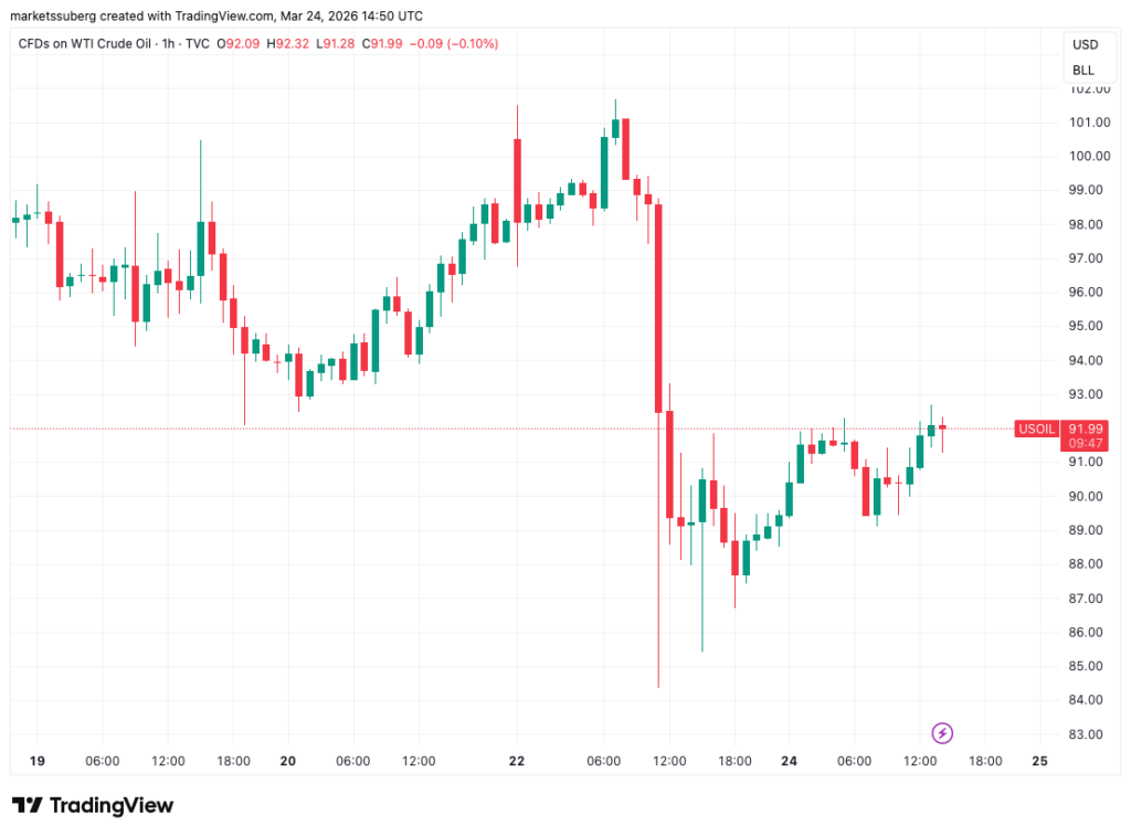ทางด้านราคาน้ำมันก็ค่อยๆ ขยับเข้าใกล้ 95 ดอลลาร์สหรัฐต่อบาร์เรล หลังจากที่ร่วงลงในช่วงต้นสัปดาห์จากข่าวลือเรื่องสันติภาพในอิหร่าน ตลาดยังคงจับตาดูชะตากรรมของการขนส่งน้ำมันผ่านช่องแคบฮอร์มุซ ท่ามกลางการโจมตีเลบานอนครั้งใหม่ของอิสราเอล
