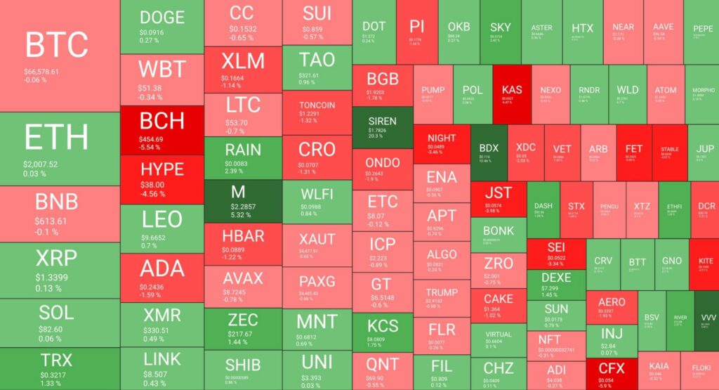 ตลาดคริปโตต้อนรับต้นสัปดาห์ด้วยความผันผวนอย่างหนัก หลังราคา Bitcoin ทิ้งตัวร่วงทะลุระดับ $65,000 ก่อนจะมีแรงซื้อปริมาณมหาศาลช้อนซื้อกลับและดันราคาสวนขึ้นมายืนเหนือ $66,600 ได้ ซึ่งความปั่นป่วน ครั้งนี้คาดว่าเกิดจากการผสมผสานของ 2 ปัจจัยหลัก คือ ปัจจัยทางเทคนิคที่มีการล้างพอร์ต ผนวกกับปัจจัยทางภูมิรัฐศาสตร์ที่ยังคงตึงเครียด ส่วนภาพรวมของตลาด Altcoin ค่อนข้างซบเซาแต่ก็ไม่ได้ร่วงตามกันไปทั้งหมดอย่างรุนแรง