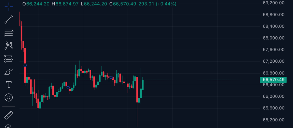 - Bitcoin ร่วงอย่างรุนแรงทะลุ $65,000 ก่อนที่จะฟื้นตัวอย่างรวดเร็วกลับมาที่ $66,600