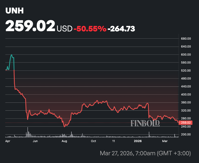 กราฟราคาหุ้น UNH ในรอบหนึ่งปี แหล่งที่มา: Finbold