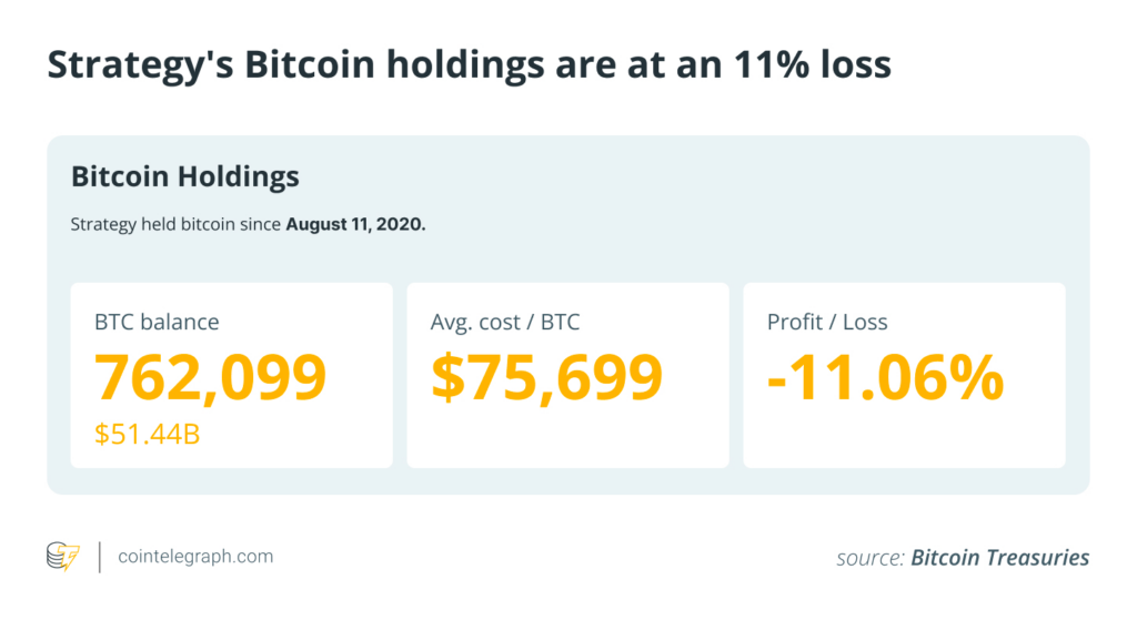 พอร์ต Bitcoin ของ Strategy ติดลบ 11%