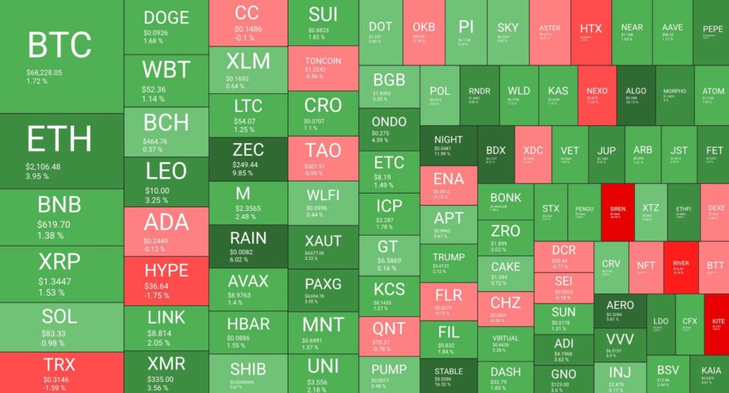 บรรยากาศการลงทุนในเช้าวันนี้เต็มไปด้วยความคึกคัก หลังจากมีสัญญาณเชิงบวกด้านภูมิรัฐศาสตร์เรื่องการยุติสงครามระหว่างสหรัฐฯ และอิหร่าน โดย ปธน. โดนัลด์ ทรัมป์ ได้ออกมายืนยันแผนการถอนทหารภายใน 2-3 สัปดาห์ ส่งผลให้ Bitcoin กลับมายืนเหนือ $68,000 ได้สำเร็จ และนับเป็นการปิดกราฟรายเดือนในแดนบวกได้เป็นครั้งแรกในรอบ 5 เดือน สิ้นสุดช่วงเวลาแห่งความซบเซาที่ยาวนาน พร้อมกับตลาดภาพรวมของ Altcoins ส่วนใหญ่ที่ฟื้นตัวอย่างแข็งแกร่ง