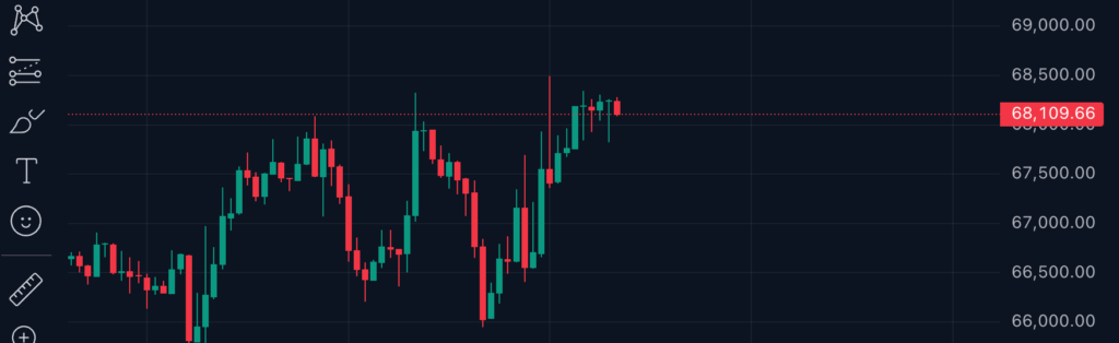 ถ้อยคำดังกล่าวได้ส่งผลทำให้ Bitcoin พุ่งทะยานอย่างรุนแรงจนกลับมายืนเหนือ $68,000 ได้เป็นผลสำเร็จ กลายเป็นว่าพี่ใหญ่สามารถปิดกราฟเดือนในโซนบวกได้เป็นครั้งแรกในรอบ 5 เดือนหลังจากที่ประสบกับขาลงมาอย่างยาวนาน โดยในขณะที่รายงาน Bitcoin มีการซื้อขายกันที่ราคา $68,100 พุ่งขึ้น 1.27% ในช่วง 24 ชั่วโมงที่ผ่านมา