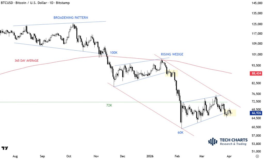 อย่างไรก็ตาม Bitcoin ยังคงเผชิญกับอุปสรรคทางเทคนิคในการฟื้นตัว โดยนักเทรดบางส่วนมีความกังวลเกี่ยวกับการหลุดกรอบของรูปแบบ Bear Flag ที่อาจเกิดขึ้นซ้ำบนกราฟรายวัน ซึ่งนักวิเคราะห์ Aksel Kibar ระบุว่าภายในไม่กี่วันข้างหน้าตลาดจะได้รับความชัดเจนว่ารูปแบบดังกล่าวจะเกิดขึ้นซ้ำและส่งผลให้ราคาปรับตัวลงต่อหรือไม่