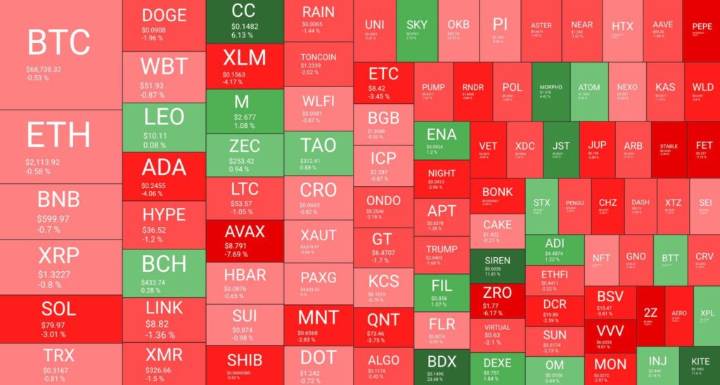 ตลาดคริปโตเคอร์เรนซีในเช้าวันนี้เผชิญกับแรงเทขายฉับพลัน นำโดย Bitcoin ที่ร่วงจาก $70,000 ลงมาสู่ระดับ $68,359 (-2.7%) ปัจจัยหลักเกิดจากความผิดหวังของนักลงทุนต่อท่าทีของประธานาธิบดีทรัมป์ ที่ปฏิเสธการประนีประนอม และกลับยื่นคำขาดขั้นเด็ดขาดให้อิหร่านเปิดช่องแคบฮอร์มุซ พร้อมขู่ถล่มโครงสร้างพื้นฐานด้านพลังงานของอิหร่านให้ย่อยยับ ส่งผลให้ Altcoin ส่วนใหญ่โดยเฉพาะ SOL และ ADA ปรับตัวลงรุนแรง ท่ามกลางกระแสเลือดสาดนี้ มีเพียงเหรียญ Canton ที่ทะยานสวนกระแสบวกขึ้นมากว่า 6%