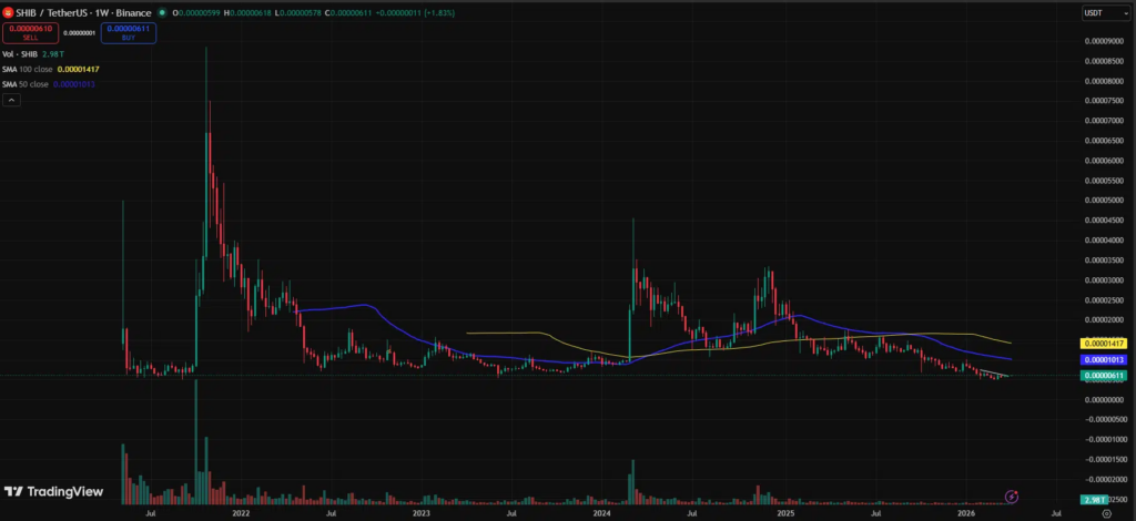 แต่เมื่อเวลาผ่านไปเกือบ 5 ปี สภาพของ Shiba Inu ในปัจจุบันกลับดูแตกต่างออกไปอย่างสิ้นเชิง ณ เวลาที่รายงาน ราคาของเหรียญได้ร่วงลงมาถึง 93% จากจุดสูงสุดในปี 2021 โดยซื้อขายกันอยู่ที่ระดับ $0.00000613 แม้ว่าข้อมูลจาก CoinGecko จะระบุว่าราคานี้ยังคงเติบโตกว่า 600,000% เมื่อเทียบกับช่วงแรกเริ่มที่เพิ่งเปิดตัว แต่สำหรับนักลงทุนที่เพิ่งเข้ามาซื้อเมื่อราว 6 ปีก่อน มูลค่าพอร์ตในตอนนี้แทบจะไม่เหลือชิ้นดี