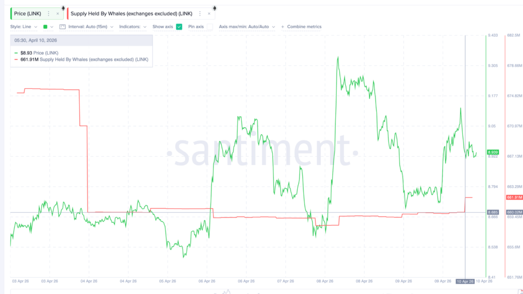 Chainlink (LINK) เป็นอีกเหรียญที่มีปริมาณการสะสมที่พุ่งสูงขึ้นอย่างกะทันหันในช่วงไม่กี่ชั่วโมงที่ผ่านมา โดย Santiment แสดงให้เห็นว่า จำนวนเหรียญในกระเป๋าเงินของเจ้ามือ LINK เพิ่มขึ้นจาก 660.02 ล้านโทเคน เป็น 661.91 ล้านโทเคน
