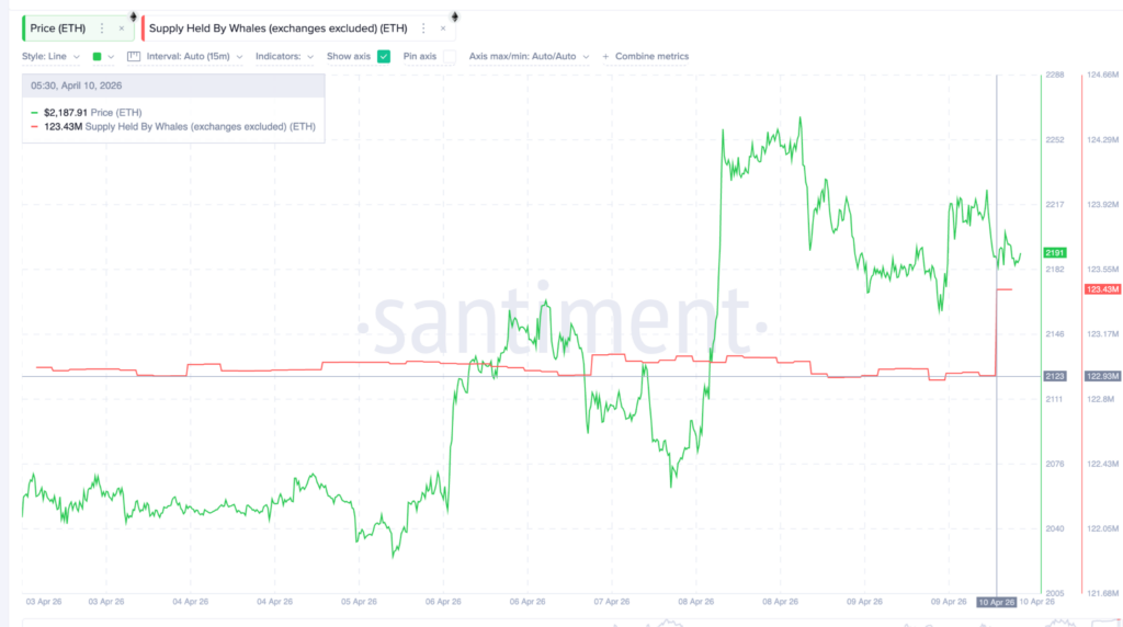 หนึ่งในโปรเจกต์ที่เริ่มมีการสะสมเหรียญอย่างเห็นได้ชัดก่อนการประกาศ CPI คือ Ethereum ซึ่งข้อมูลจาก Santiment เผยว่าจำนวนเหรียญในกระเป๋าเจ้ามือได้พุ่งขึ้นจาก 122.93 ล้าน ไปสู่ 123.43 ล้านโทเคนในเวลาไม่กี่ชั่วโมง หมายความว่ามี Ethereum กว่า 500,000 ETH คิดเป็นมูลค่ากว่า $1.09 พันล้านถูกซื้อออกไป