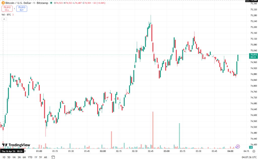 ในเวลาเดียวกัน ตลาดคริปโตเคอร์เรนซีก็คึกคักไม่แพ้กัน พี่ใหญ่อย่าง Bitcoin (BTC) พุ่งแตะระดับ $75,000 อีกครั้ง ท่ามกลางบรรยากาศการลงทุนแบบ เปิดรับความเสี่ยงที่แผ่ขยายไปทั่วโลก โดยมีปัจจัยหนุนสำคัญจากการที่นักลงทุนคลายความกังวลในประเด็นเรื่องสงครามตะวันออกกลาง หลังมีสัญญาณบวกว่า ความขัดแย้งระหว่างสหรัฐฯ และอิหร่านกำลังเข้าสู่กระบวนการเจรจาสันติภาพและการประกาศหยุดยิง ซึ่งช่วยลดแรงกดดันต่อราคาน้ำมันและเศรษฐกิจโลกอย่างมีนัยสำคัญ