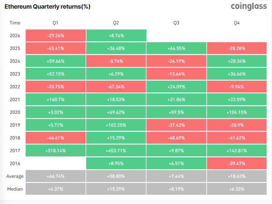 สาเหตุหลักที่เขาแนะนำให้หนีออกมาก่อนแล้วค่อยกลับไปช้อนซื้อในเดือนพฤษภาคม เป็นเพราะสถิติการเติบโตตามฤดูกาล (Seasonality) หากดูจากข้อมูลย้อนหลัง 13 ปี เดือนพฤษภาคมมักจะให้ผลตอบแทนเฉลี่ยอยู่ที่ราวๆ 8 เปอร์เซ็นต์ และสามารถปิดแท่งเดือนเป็นสีเขียวได้ถึง 7 ปี นอกจากนี้ ไตรมาสที่สองของทุกปีมักจะเป็นช่วงที่ตลาดคริปโตติดเครื่องวิ่งแรงที่สุด โดยมีสถิติการพุ่งขึ้นเฉลี่ยถึง 58 เปอร์เซ็นต์ ซึ่งถือเป็นจังหวะทองคำของการทำกำไรหลังจากที่ตลาดซึมเศร้ามาในช่วงต้นปี